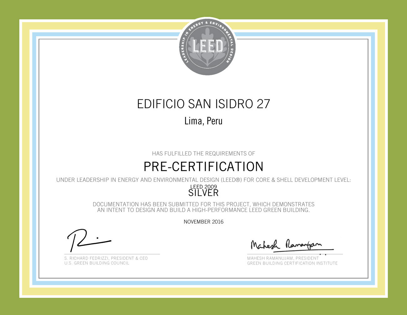 San Isidro 27 está diseñado y construido bajo los estándares de la nueva visión de edificaciones sustentables a nivel mundial.
