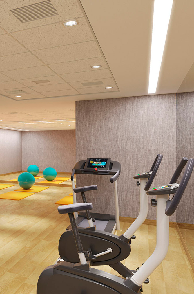 Para quienes prefieren ejercitarse físicamente al iniciar o culminar sus labores, se cuenta con un gimnasio en el sótano 1, que incluye duchas, cambiadores y casilleros.